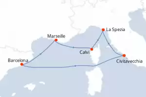 Itinerary : Civitavecchia / Rome, Barcelona, Marseille, Calvi, La Spezia, Civitavecchia / Rome