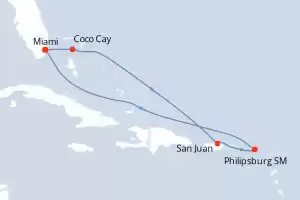 Itinerary : Miami, Coco Cay, San Juan, Philippsburg, Miami