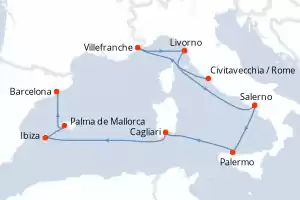 Itinerary : Civitavecchia / Rome, Villefranche, Livorno, Salerno, Palermo, Cagliari, Ibiza, Palma de Mallorca, Barcelona