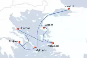 Itinerary : Piraieus, Skiathos, Kusadasi, Lesbos, Istanbul, Mykonos, Piraieus