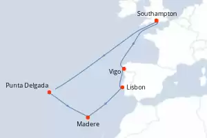 Itinerary : Southampton, Punta Delgada, Madeira, Lisbon, Vigo, Southampton