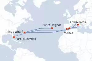 Itinerary : Fort Lauderdale, King's Wharf, Punta Delgada, Malaga, Cartagena, Civitavecchia / Rome