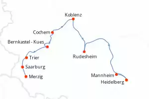 Itinerary : Merzig, Saarburg, Trier, Bernkastel - Kues, Cochem, Koblenz, Rudesheim, Heidelberg, Mannheim