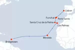 Itinerary : Bridgetown, Mindelo, Las Palmas, Santa Cruz de la Palma, Funchal, Porto Santo, Lisbon