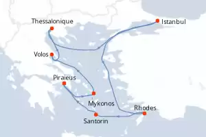 Itinerary : Piraieus, Mykonos, Volos, Thessaloniki, Istanbul, Rhodes, Santorini, Piraieus, Mykonos, Volos, Thessaloniki, Istanbul, Rhodes, Santorini, Piraieus