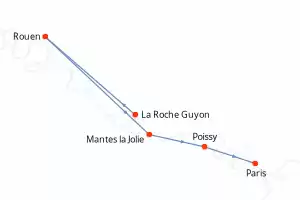 Itinerary : Paris, La Roche Guyon, Rouen, Mantes la Jolie, Poissy, Paris