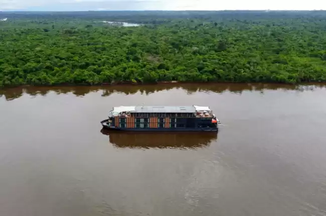 This includes active partnerships with indigenous communities to promote Amazonian craftsmanship, wildlife protection programs such as the reintroduction of Taricaya turtles, and onboard technologies designed to reduce pollutants discharged into the Pacaya Samiria Reserve. The ship’s design also integrates recycled materials, optimized resource management, and an eco-friendly reverse osmosis water purification system.