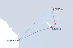 Itinerary : Brisbane, Port Vila, Mysterious Island, noumea, Brisbane