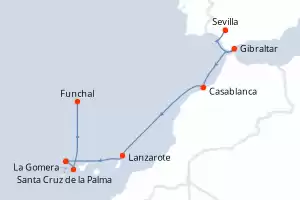 Itinerary : Sevilla, Gibraltar, Casablanca, Lanzarote, Santa Cruz de la Palma, La Gomera, Funchal