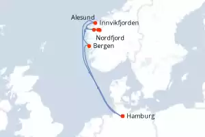 Itinerary : Hamburg, Bergen, Nordfjord, Innvikfjorden, Olden, Alesund, Hamburg