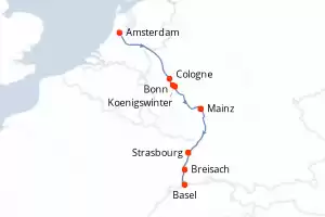 Itinerary : Amsterdam, Nimegue, Cologne, Koenigswinter, Koblenz, Mainz, Strasbourg, Breisach, Basel