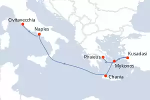 Itinerary : Civitavecchia / Rome, Naples, Chania, Kusadasi, Mykonos, Piraieus