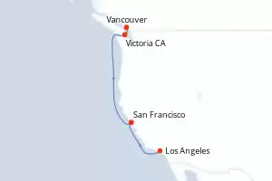 Itinerary : Vancouver, Seattle, San Francisco, Los Angeles, Cabo San Lucas, Mazatlan, Fuerte Amador, Gatun, Aruba, Port Canaveral