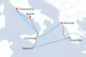 Itinerary : Civitavecchia / Rome, Saranda, Katakolon, Valetta, Catanio, Naples, Civitavecchia / Rome