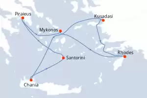 Itinerary : Piraieus, Santorini, Chania, Kusadasi, Rhodes, Mykonos, Piraieus