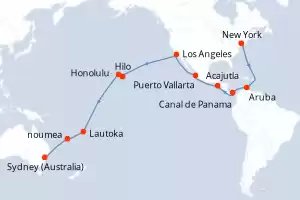 Itinerary : New York, Aruba, Panama Canal, Acajutla, Puerto Vallarta, Los Angeles, Hilo, Honolulu, date, Lautoka, noumea, Sydney (Australia)