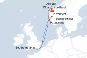 Itinerary : Southampton, Haugesund, Nordfjord, Innvikfjorden, Olden, Alesund, Hardangerfjord, Southampton
