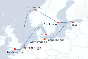 Itinerary : Southampton, Copenhagen, Warnemunde, Talinn, Stockholm, Kristiansand, Zeebrugge, Southampton