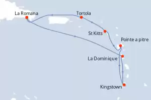 Itinerary : La Romana, Dominica, Kingstown, Pointe a pitre, St Kitts, Tortola, La Romana
