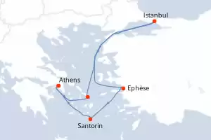 Itinerary : Piraieus, Mykonos, Istanbul, Ephesus, Santorini, Piraieus