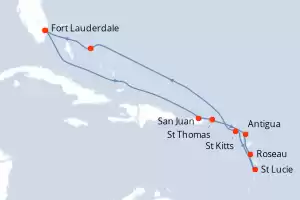 Itinerary : Fort Lauderdale, San Juan, St Thomas, Antigua, Roseau, St Lucie, St Kitts, Half Moon Cay, Fort Lauderdale
