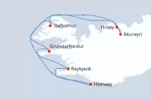 Itinerary : Reykjavik, Heimaey, Grundarfjordur, Grimsey Island, Akureyri, Isafjodhur, Reykjavik