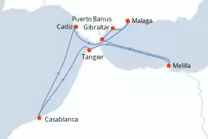 Itinerary : Malaga, Cadiz, Casablanca, Tangier, Melilla, Gibraltar, Puerto Banus, Malaga