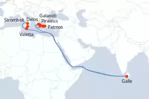 Itinerary : Piraieus, Patmos, Delos, Paros, Corinth Canal, Hydra, Galaxidi, Galle, Stromboli, Syracuse (Sicily), Valetta
