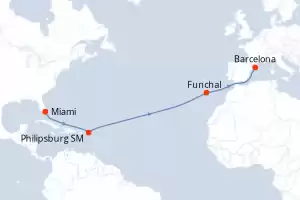 Itinerary : Barcelona, Funchal, San Juan, Miami