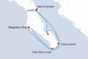 Itinerary : Cabo San Lucas, Magdalena Bay, Cabo pulmo, Loreto, Isla Coronado, La Paz - Pichilingue, Cabo San Lucas