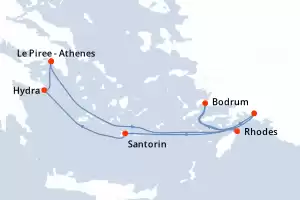 Itinerary : Piraieus, Milos, La Canee, Santorini, Bodrum, Amorgos, Hydra, Piraieus