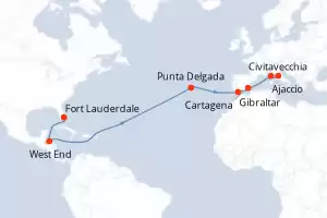 Itinerary : Fort Lauderdale, West End, Punta Delgada, Gibraltar, Cartagena, Ajaccio, Civitavecchia / Rome