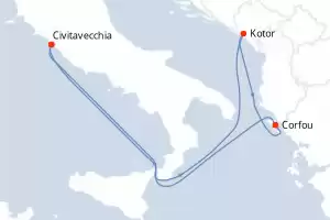 Itinerary : Civitavecchia / Rome, Kotor, Corfu, Civitavecchia / Rome