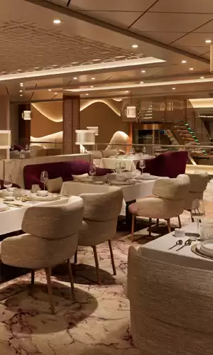 Designed as a large floating resort, the AROYA spans multiple decks and offers numerous bright staterooms and suites—many with balconies—that serve as private retreats between ports of call. Common areas are spacious, including panoramic lounges, a large theater, an aquatic zone with slides, kids’ and teens’ clubs, a wellness center, and full sports facilities. The attentive crew is present throughout your journey to ensure everything feels smooth and comfortable. For travelers seeking even more exclusivity, the Khuzama complex features premium suites with personalized services such as butler service, priority boarding, and private dining and lounge areas, adding an elevated touch to the AROYA experience.