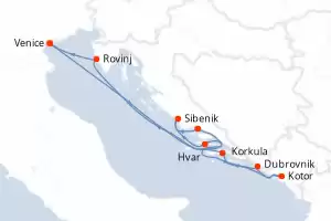 Itinerary : Venice, Hvar, Sibenik, Split, Kotor, Dubrovnik, Korcula, Rovinj, Venice