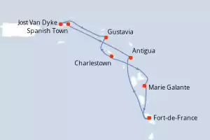 Itinerary : Fort-de-France, Antigua, Spanish Town, Jost Van Dyke, Gustavia, Charlestown, Marie Galante, Fort-de-France
