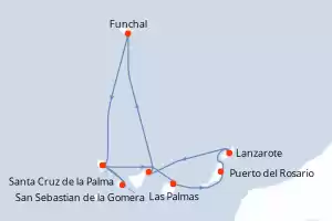 Itinerary : Las Palmas, Lanzarote, Puerto del Rosario, Lanzarote, Santa Cruz de Tenerife, Funchal, Santa Cruz de la Palma, San Sebastian de la Gomera, Las Palmas