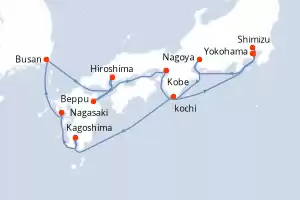 Itinerary : Yokohama, Shimizu, Kobe, Kochi, Hiroshima, Busan, Nagasaki, Kagoshima, Beppu, Yokohama