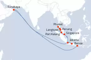 Itinerary : Singapore, Port Kelang, Penang, Phuket, Langkawi, Jakarta, Semarang, Surabaya, Benoa